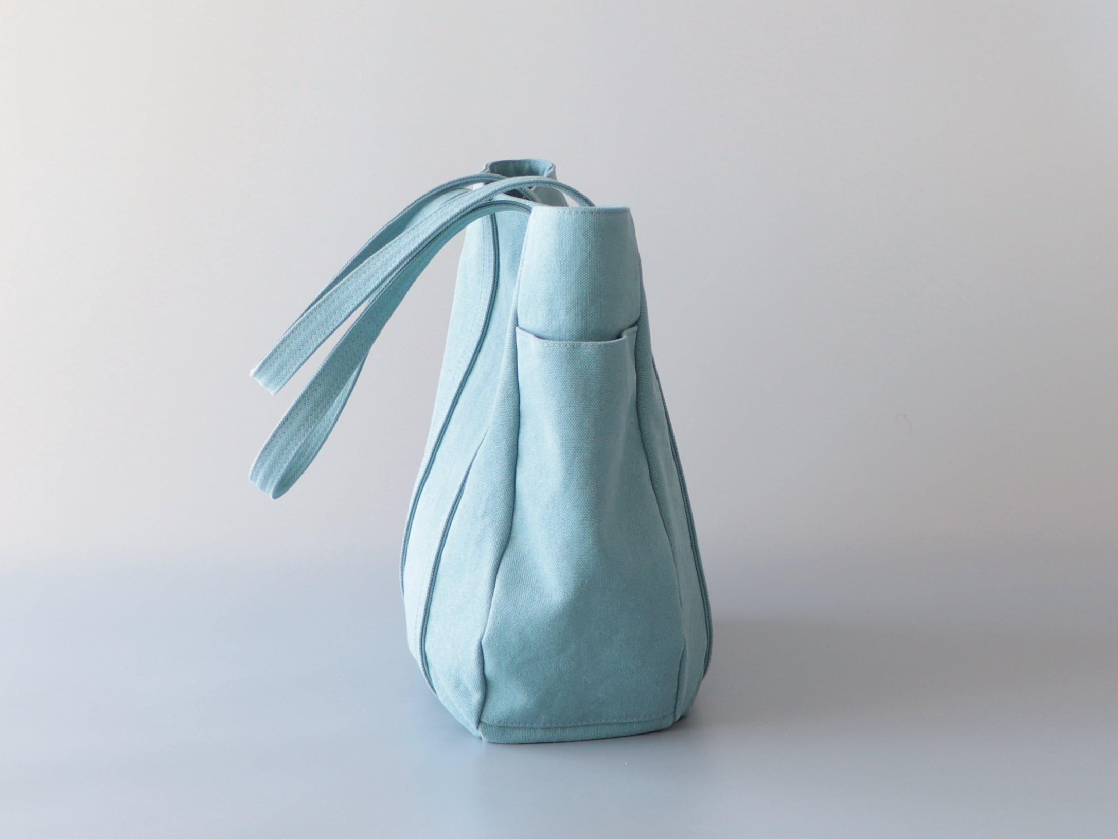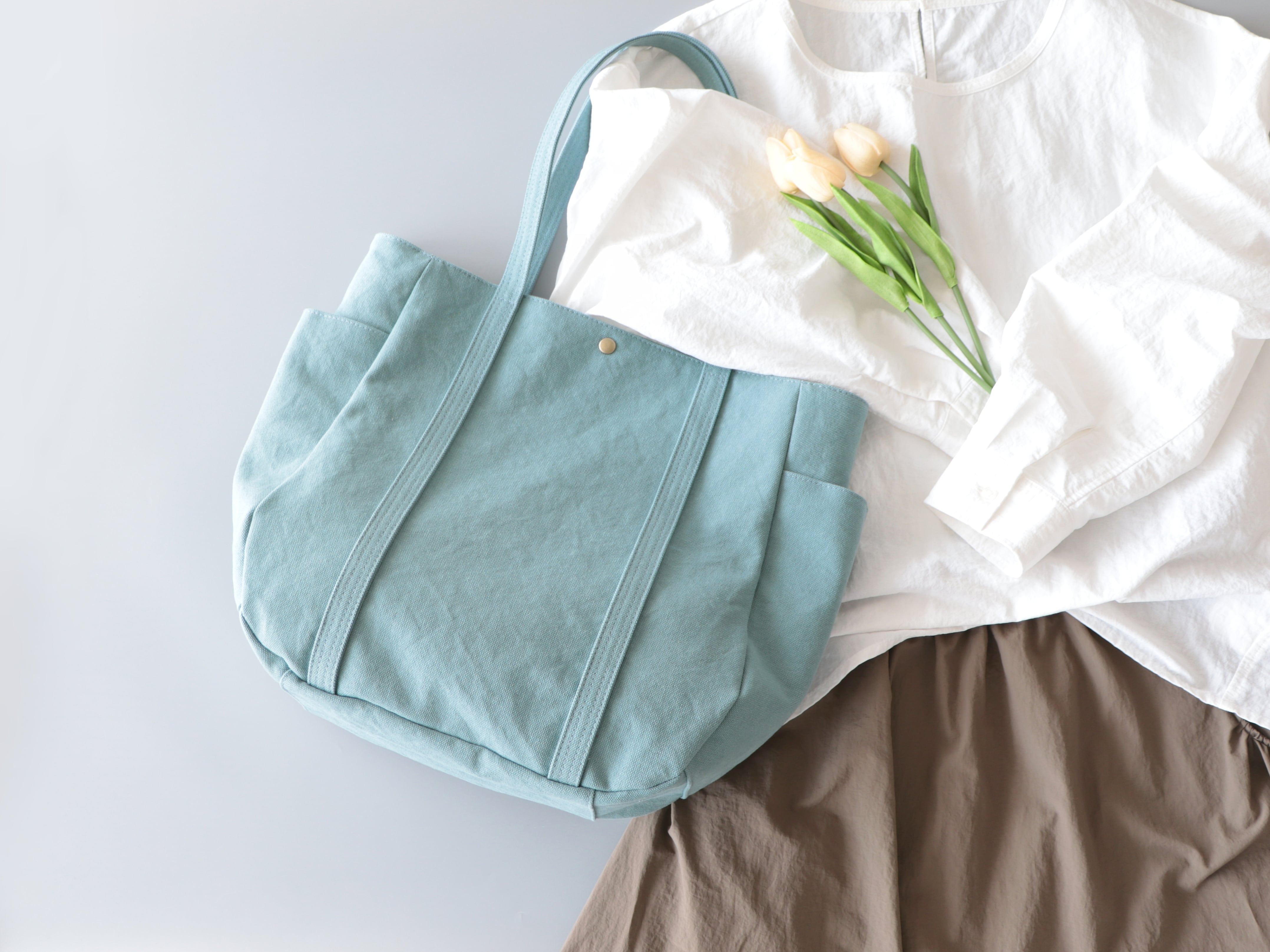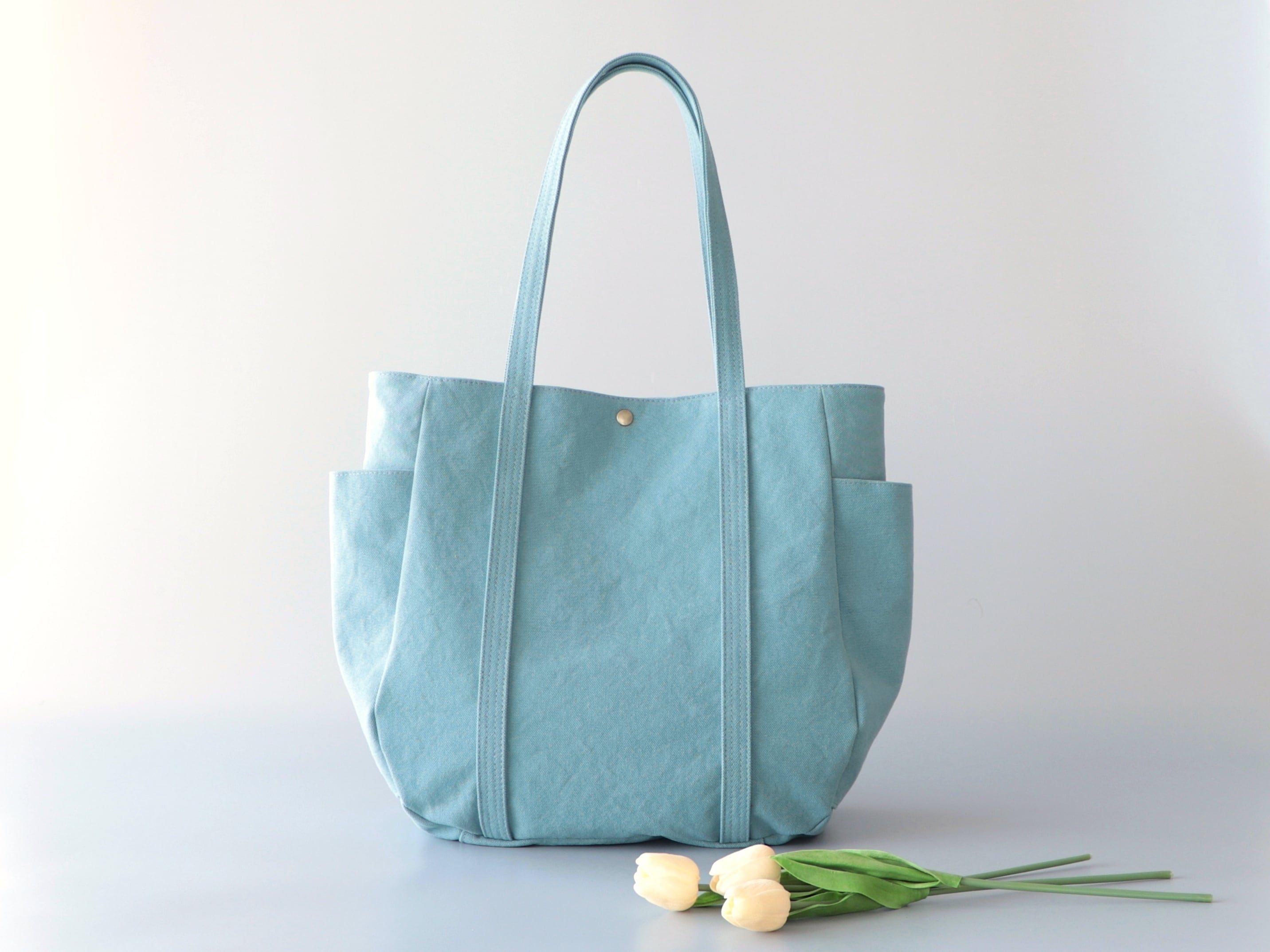 春限定色*大ぶりラウンドトート*大容量(ウォッシュブルー)