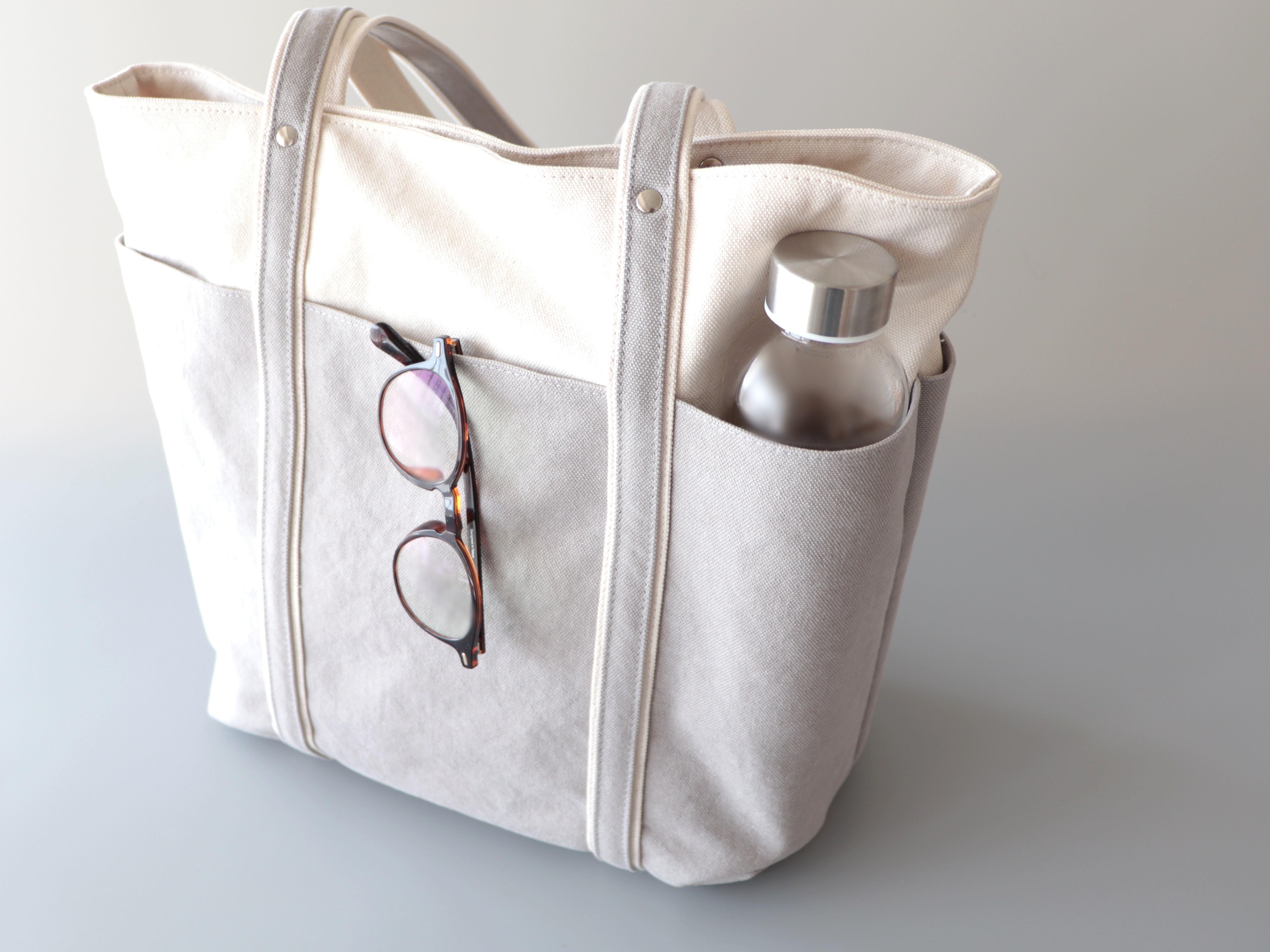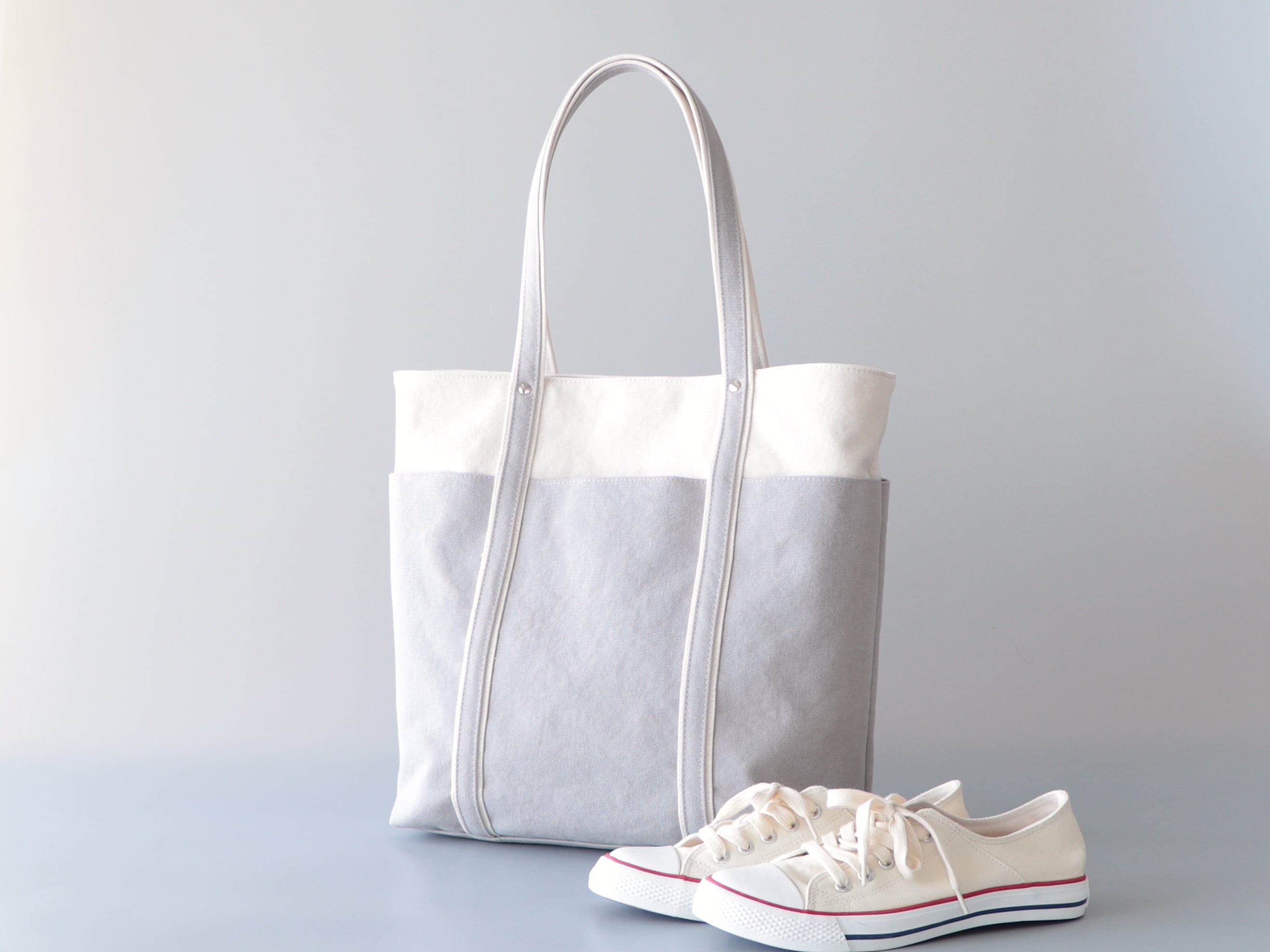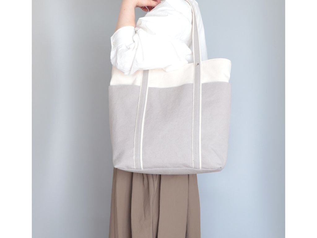 新年度トートに◎荷物多めさんにも嬉しい大容量*バイカラートートLsize(生成×アイスグレー)