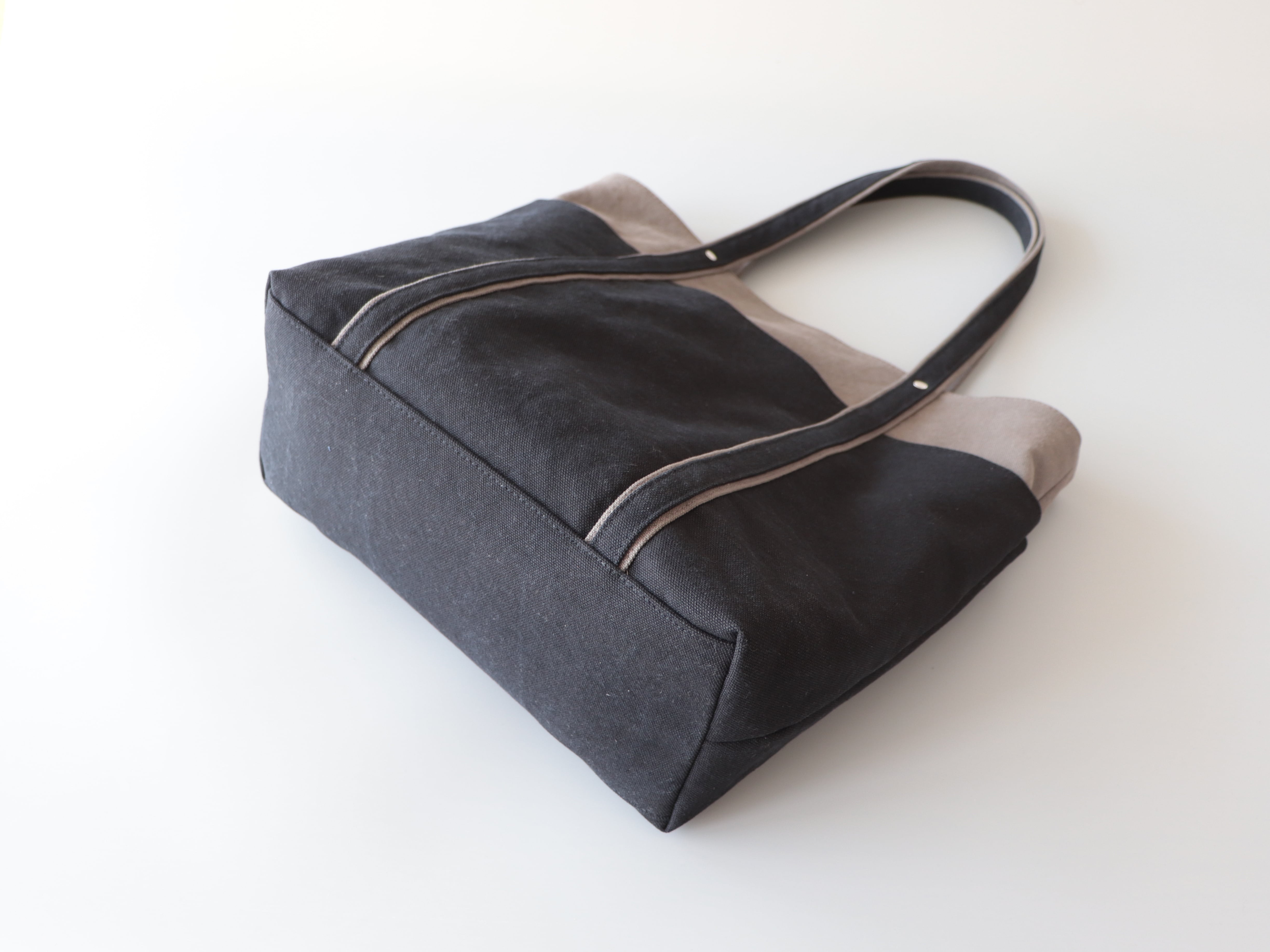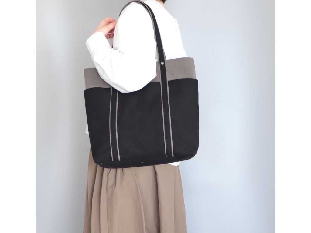 新年度トートに◎荷物多めさんにも嬉しい大容量*バイカラートートLsize(ミドルグレー×黒)