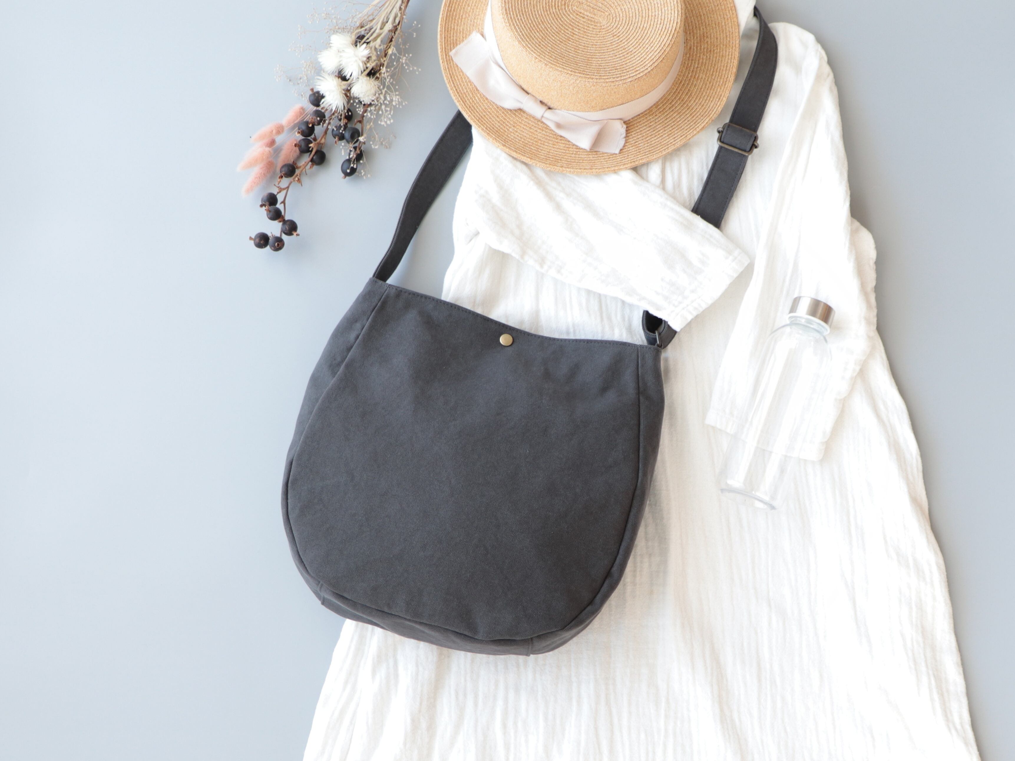 シンプルで使いやすい大容量*ラウンドショルダー(チャコール)