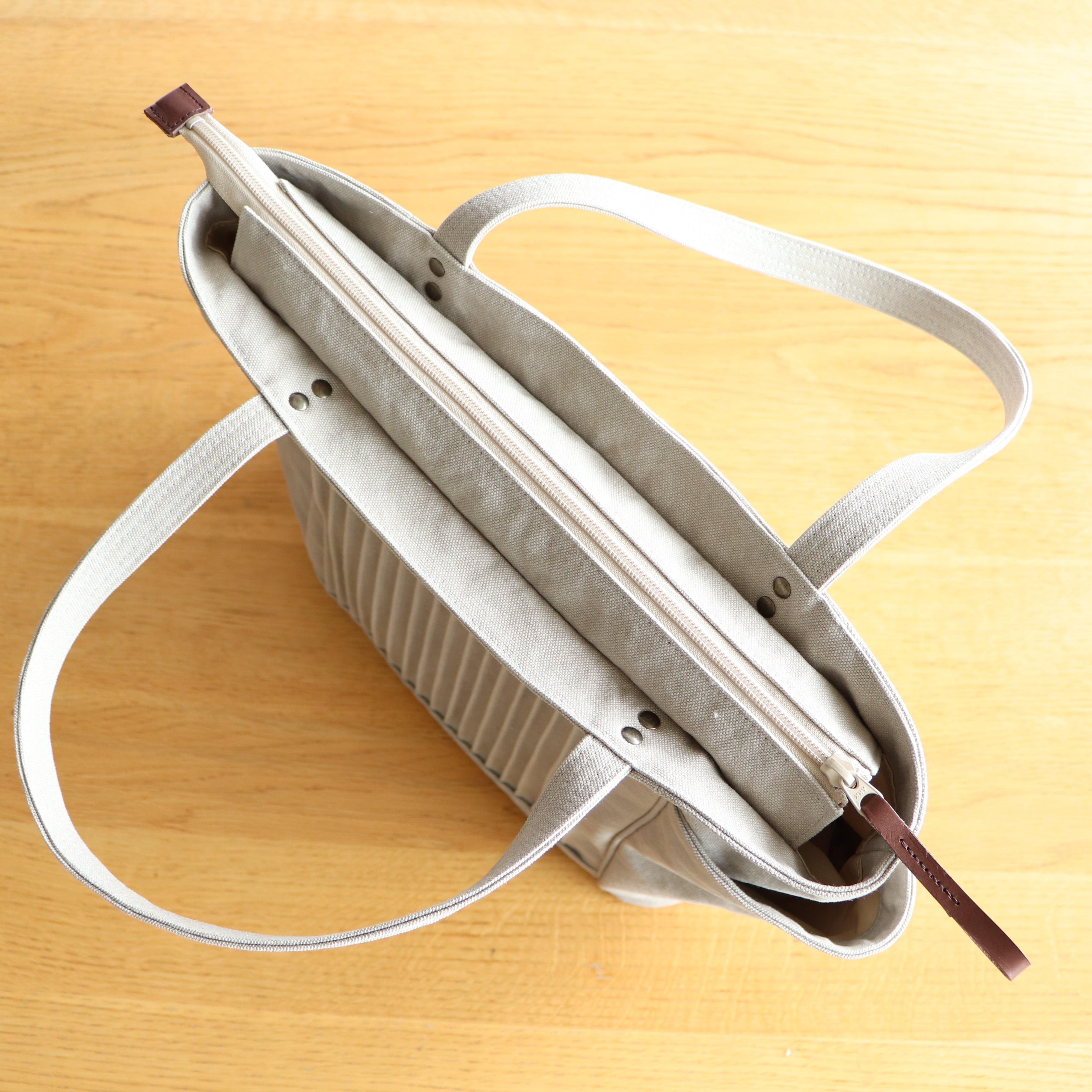 口ファスナーは薄ベージュのコイルファスナーのままになります。