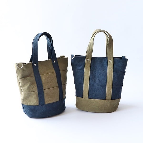 縦長ミニトート(カーキ&ネイビー)選べる配色♪