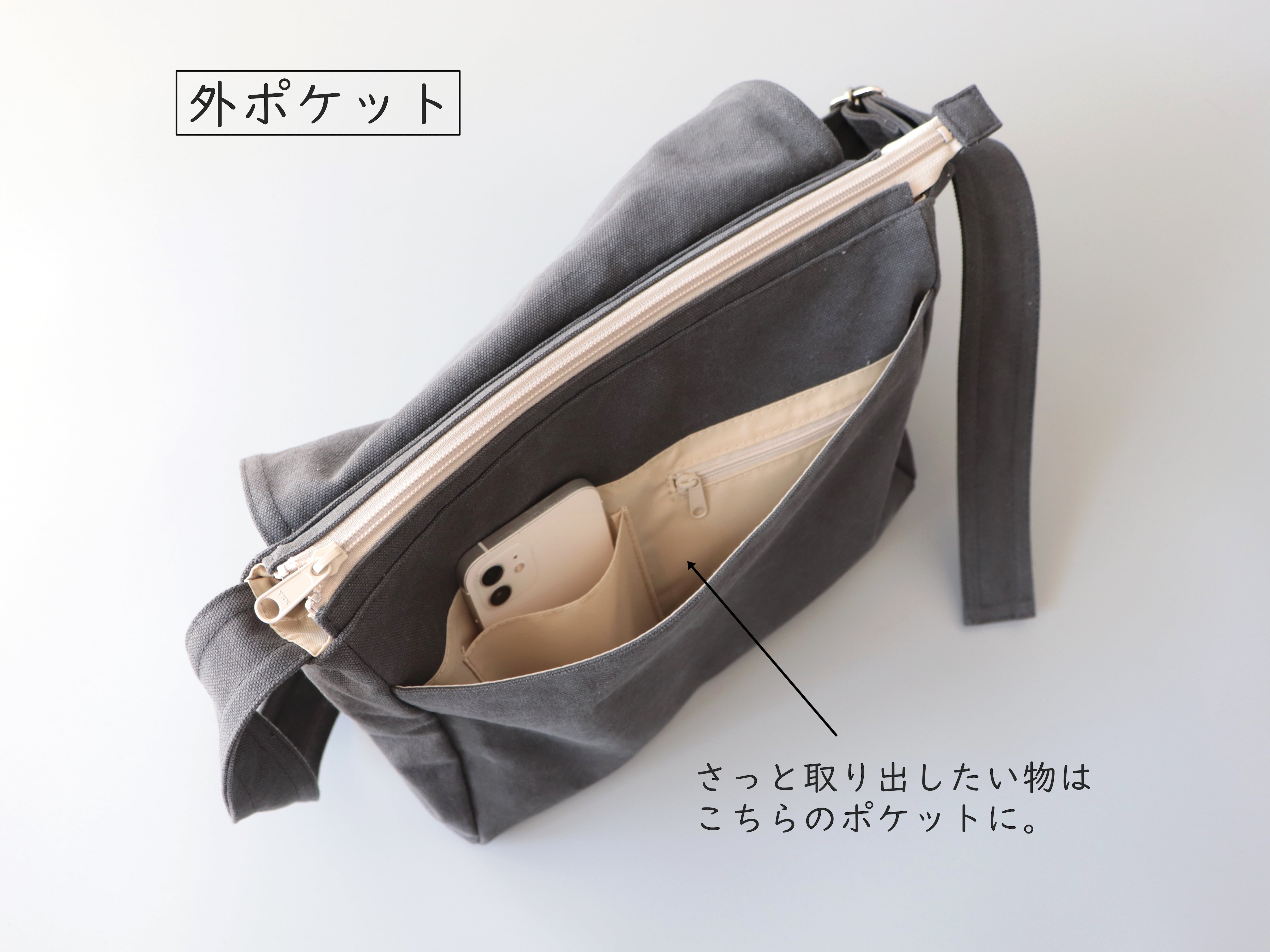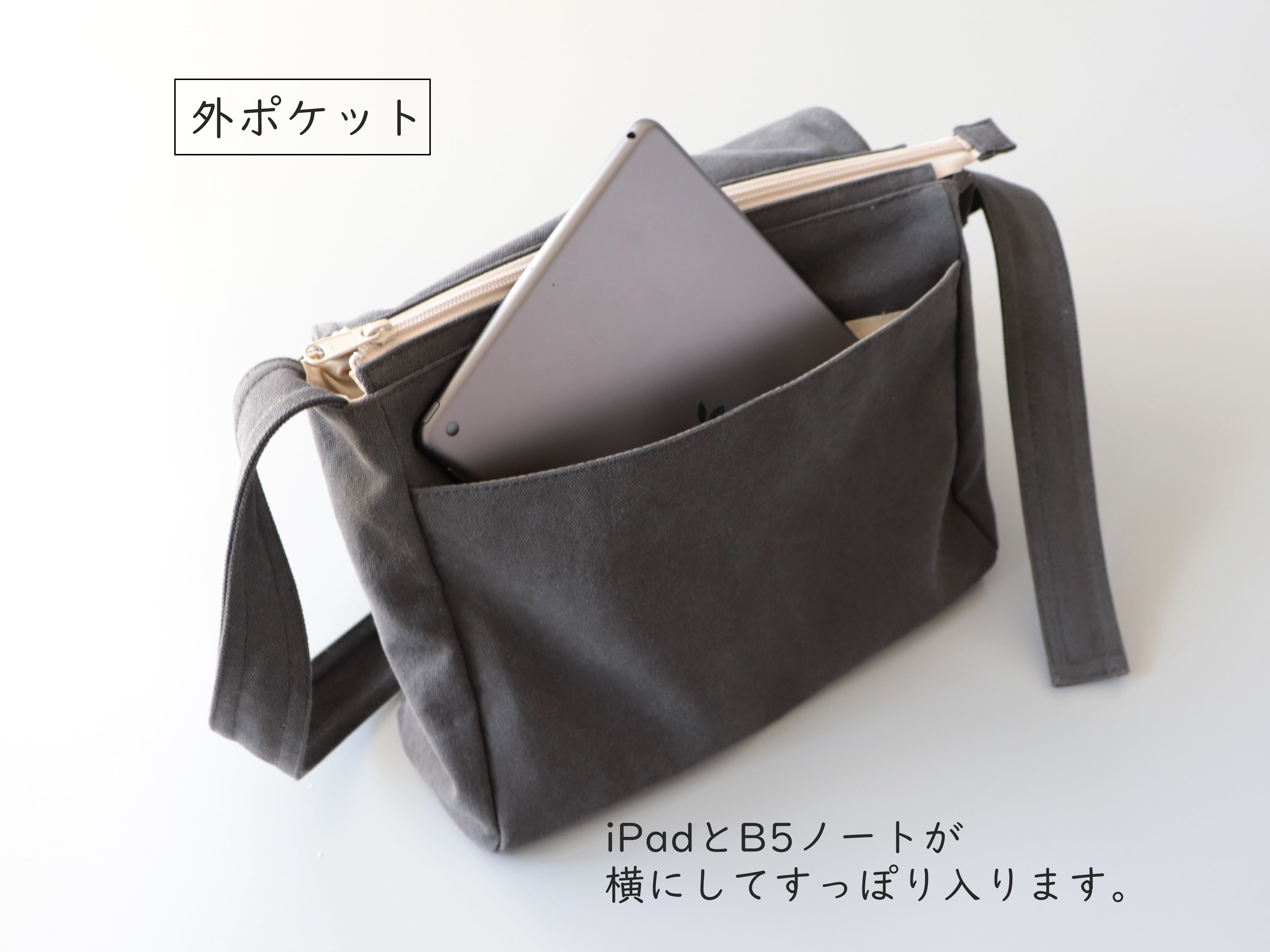 外ポケット:12㎝ファスナーポケット、スマホポケット、B5サイズポケット